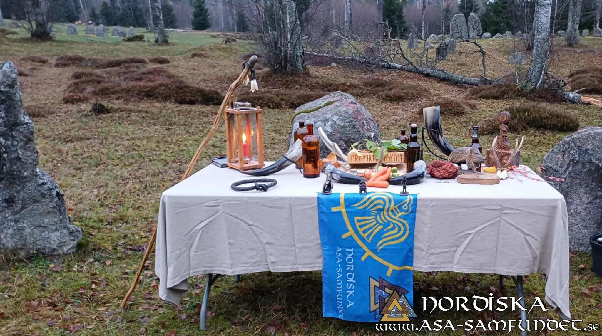Blotet flöt på fint och efter det var avslutat så fikade vi gemensamt och det var en väldigt lugn och fin stund då alla verkade glada och pratade med varandra. Offergåvorna placerades vid utkanten av gravfältet vid foten av vårt offerträd.